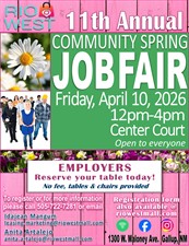 Spring is here and coming up is our Spring Job Fair! Rio West Mall will be hosting our 11th Annual "Spring Job Fair" on Friday April 10, 2026, Noon to 4pm at the Rio West Mall. We would like to invite your business to reserve a table at this event. There is no fee to participate, and space is limited. A prompt response will ensure you a table at our fair.