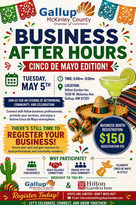 Whether you’re a longtime member or new to the area, Business After Hours offers a welcoming environment to expand your network, increase visibility, and stay connected to the Gallup-McKinley County business community