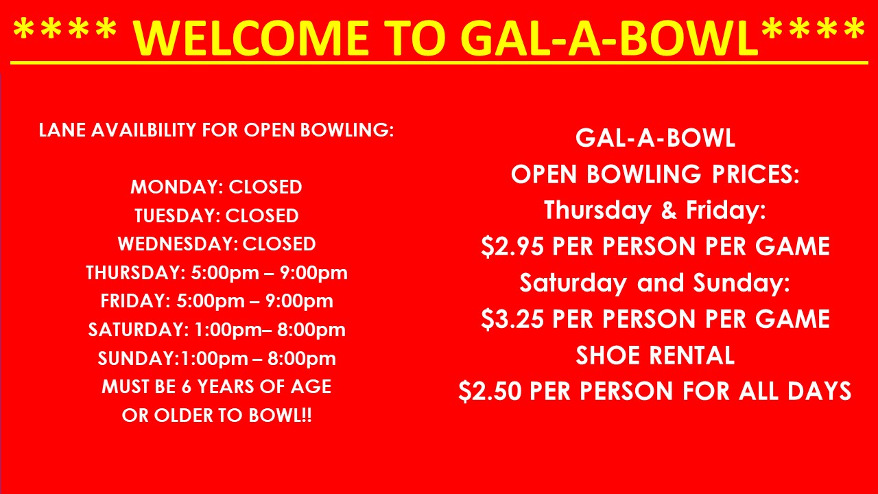Gal-A-Bowl Categories BowlingEducationEntertainmentFitness 1900 E. Aztec Gallup NM 87301 (505) 863-9669 (505) 863-5552 Visit Website Share × Print Email Facebook Twitter LinkedIn Tell a Friend ×